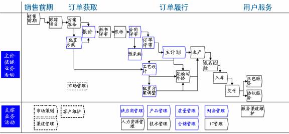 | 按订单生产管理解决方案的架构平台,它围绕公司基础协同业务,从项目型企业的市场线索、研发以及生产、服务交付等业务价值链的过程出发,利用Ultimus BPM Studio提供的流程管理平台,集成第三方企业级应用系统(如CRM、ERP、SCM等),以项目管理为核心,把项目管理和流程管理紧密结合起来。 |