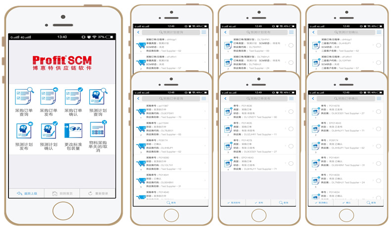 以手持移动终端(包括:以Android、IOS操作系统的手机、IPAD、条码枪等手持终端)为作业平台,围绕采购预示、物流配送、供应商管理、财务开票等核心业务理念实现的App应用。着重解决摆脱PC和WIFI的限制的同时,实现自由办公、实时通讯、快速响应等。